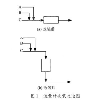 流量計(jì)輸出波動(dòng)是出現(xiàn)比率*多的故障類型,這種情況大多是由于儀表安裝不當(dāng)或工藝流體影響造成的。流量計(jì)安裝改造圖如圖1所示。