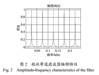 要實現(xiàn)上述信號處理方法,要求所設(shè)計的濾波器對勵磁頻率的奇數(shù)倍的頻率分量處的增益為1,而其他頻率分量則被大幅度的削弱。其幅頻特性曲線如圖2所示。