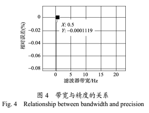 由圖4可知,當(dāng)濾波器的通帶帶寬大于0.5Hz左右時,處理結(jié)果的相對誤差非常接近于零,而當(dāng)帶寬小于0.5Hz時,濾波器的特性變壞,削弱了有用分量,使得相對誤差發(fā)生顯著變化。為了避免這個影響,選取濾波器的通帶帶寬應(yīng)大于0.5Hz。