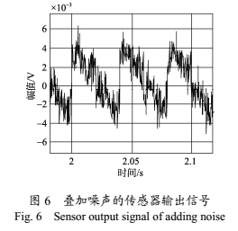 可見,在模擬實際測量疊加噪聲的情況下,矩形波單峰值在0.002~0.02變化時,處理結(jié)果的相對誤差在0.3%以內(nèi)。由圖7并計算可知,經(jīng)過處理后的輸出信號的信噪比已由之前的-10.9dB提高到16dB。因此,該方法可以有效地抑制信號中的噪聲干擾,有助于提高處理結(jié)果的精度。
