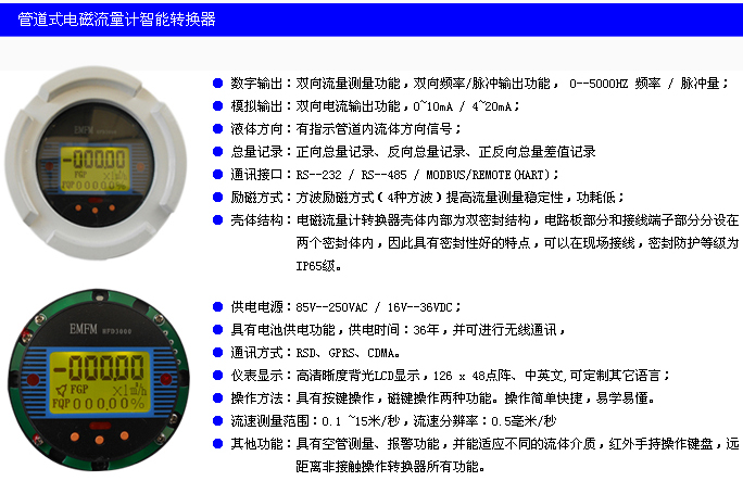 智能電磁流量計是我公司采用國內(nèi)外技術研制開發(fā)的全智能型電磁流量計,全中文電磁轉(zhuǎn)換器內(nèi)核采用高速中央處理器。計算速度非常快、精度高、測量性能可靠。轉(zhuǎn)換器電路設計采用國際先進技術,輸入阻抗高達1015?歐姆,共模抑制比優(yōu)于100db,對于外來干擾以及60Hz/50Hz?干擾抑制能力優(yōu)于90db,可以測量更低的電導率的流體介質(zhì)流量。其傳感器采用非均勻磁場技術及特殊的磁路結(jié)構(gòu),磁場穩(wěn)定可靠,而且大的縮小了體積,減輕了重復,使流量計小型流量化的特點。使客戶“買的放心,用的省心,服務稱心”是我公司的宗旨。