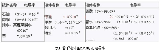 表1 若干液體在20℃時的電導(dǎo)率