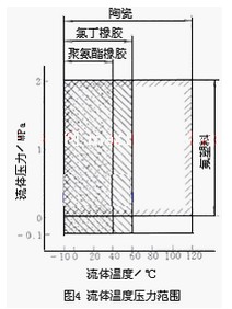 常用襯里材料有氟塑料、聚氨酯橡膠、氯丁橡膠和陶瓷等。近年有采用高純氧化鋁99.99%AI2O3)陶瓷制成襯里的,但只限中小口徑傳感器。氯丁橡膠和玻璃鋼用于非腐蝕性或弱腐蝕性液體,如工業(yè)用水、廢污水及弱酸堿,價格*為低廉。氟塑料具有優(yōu)良的耐化學腐蝕性,但耐磨性差,不能用于測量礦漿液。氟塑料中*早應(yīng)用的是聚四氟乙烯,因與測量管間僅靠壓貼,無粘結(jié)力,不能用于負壓管道,后開發(fā)各種改性品種,實現(xiàn)注塑成形,與測量管有較強結(jié)合力,可用于負壓。聚氨酯橡膠有*好的耐磨耗性,但耐酸堿的腐蝕性較差,它的耐磨性相當于天然橡膠的10倍,適用于煤漿、礦漿、介質(zhì)溫度低于40~60/70℃的場合。氧化鋁陶瓷有*好的耐磨耗性和對強酸堿的耐磨腐蝕性,耐磨性約為聚氨酯橡膠的10倍,適用于具有腐蝕性的礦漿,但性脆,安裝夾緊時易碎,可用于較高溫度(120~140/180℃)但要防止溫度劇變,如通蒸汽滅菌,一般溫度突變不能大于100℃,升溫150℃ 要有10min時間。 通用型EMF幾種材料的壓力、溫度大體適用范圍可參閱下圖。