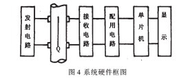 根據(jù)上述測(cè)量系統(tǒng)的數(shù)學(xué)模型,測(cè)試系統(tǒng)的硬件包括超聲發(fā)射電路、傳感器、超聲接收電路、配用電路以及單片機(jī)和顯示電路等部分組成,如圖4所示。