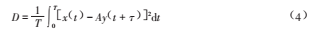 作為衡量x(t)和y(t+T)之間波形差異的一個(gè)尺度。按*小均方差為判據(jù),D越小,則y(t+T)的波形與x(t)的波形相似程度越高。令dD/dA=0,可以解出D為*小值的A為