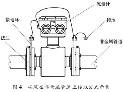 一體式污水流量表安裝在金屬管道上,安裝時將金屬管道與一體式污水流量表相連接,接地線再接入接地網(wǎng),如圖 3 所示。