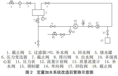 根據(jù)設計思路,對定量加水系統(tǒng)的管路進行了改造設計,改造后管路示意圖如圖 2 所示。