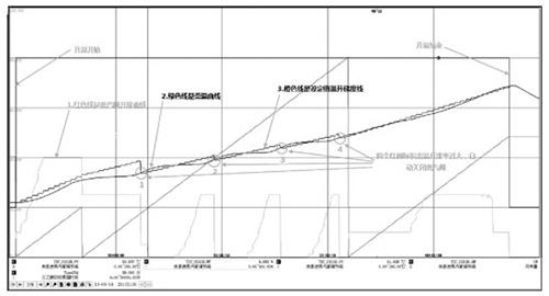 全過程升溫曲線見圖 2,從圖 2 可以看出,通過上述工藝參數(shù)的設(shè)定,從升溫開始到升溫結(jié)束,鹽水流量計溫基本上是按照溫升梯度進行升溫,當(dāng)出現(xiàn)溫升速率太快時,蒸汽閥自動關(guān)閉,無需人工參與,可以自動控制鹽水流量計料液溫度的平緩上升,實現(xiàn)脫溶單元操作自控運行。