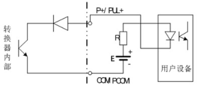 PUL+/ P+、ALM+(AH)、ALM-(AL)和 PDIR(FDIR)均為集電*開(kāi)路(OC 門)輸出(參閱圖 3.6b、3.6d,用戶接線時(shí)必須參照如下電路外接電源和負(fù)載: