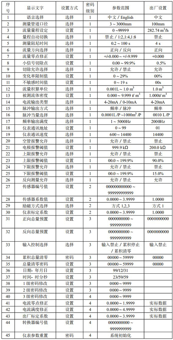 儀表參數(shù)決定儀表的運(yùn)行狀態(tài)、計(jì)算方法、輸出方式。正確地選用和設(shè)置儀表參數(shù),可使儀表運(yùn)行在*佳狀態(tài),能得到較高的測量顯示精度和測量輸出精度。