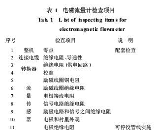 若能證明測量要素B仍保持在原校準流量時的允差范圍內(nèi),且證明沒有影響流量信號的其他不利因素(如信號回路絕緣電阻下降),就可確認所測流量值仍保持原有性能的值。為證明B維持原值,應檢驗勵磁線圈電阻/絕緣以及勵磁電流,評估B;檢查電*信號電路絕緣良好,證明流量信號沒有被分流;測量電*接液電阻,評估電*表面狀況是否妨礙正常測量;檢查測量各部件絕緣電阻以判斷零部件劣化程度;再以模擬信號器及其他通用儀器檢查轉(zhuǎn)換器完好性。這些檢查項目如表1所示,文獻有詳細的論述。