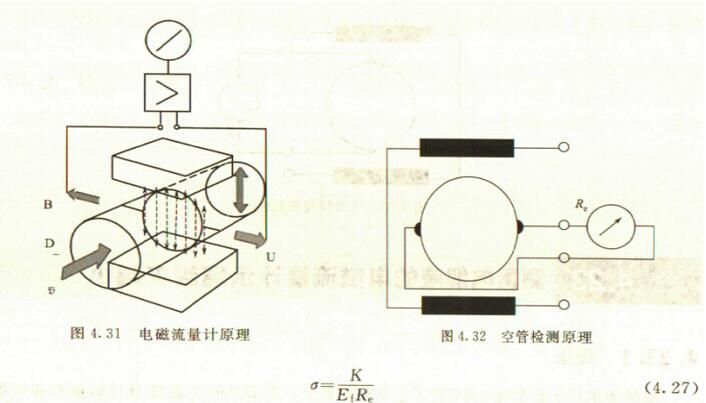 分體電磁流量計(jì)是速度式流量計(jì)中的一種。它給出的信號(hào)其實(shí)是流過測量管的液體平均流速,在測量管內(nèi)液體充滿的情況下,式(4.28)成立: