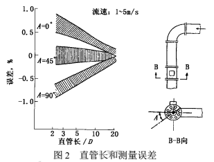 2000年上海原水公司擬在已建成的某泵站加裝DN22001寸電磁流量計(jì),但彎管下游安裝位置的前直管長(zhǎng)度明顯不符合規(guī)定中5D~10D(D為管徑,下同)的要求,此時(shí),影響測(cè)量誤差有多大呢?