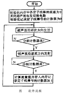 單片機(jī)控制電路主要完成3種功能:(1)控制計(jì)數(shù)電路的工作時(shí)序;(2)完成收發(fā)換能器的切換;(3)將測(cè)量的流速值通知上位機(jī)(圖6)。