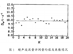 評價測量結(jié)果好壞的指標(biāo)是其觀測數(shù)據(jù)精度的大小,亦即要求觀測結(jié)果的離散程度應(yīng)該盡可能小。圖1、圖2分別表示對同樣運行工況下同時采用超聲波流量計和凝汽器熱平衡方法得到的冷卻水流量測量值及其相應(yīng)的均值。其中,k為測量點數(shù)。